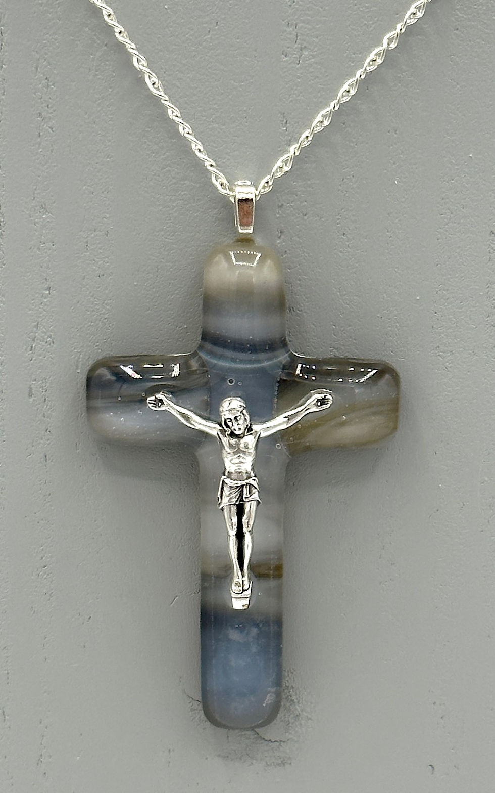 'Petrified Wood' Glass Crucifix Pendant Necklace - Quantity Discount Available